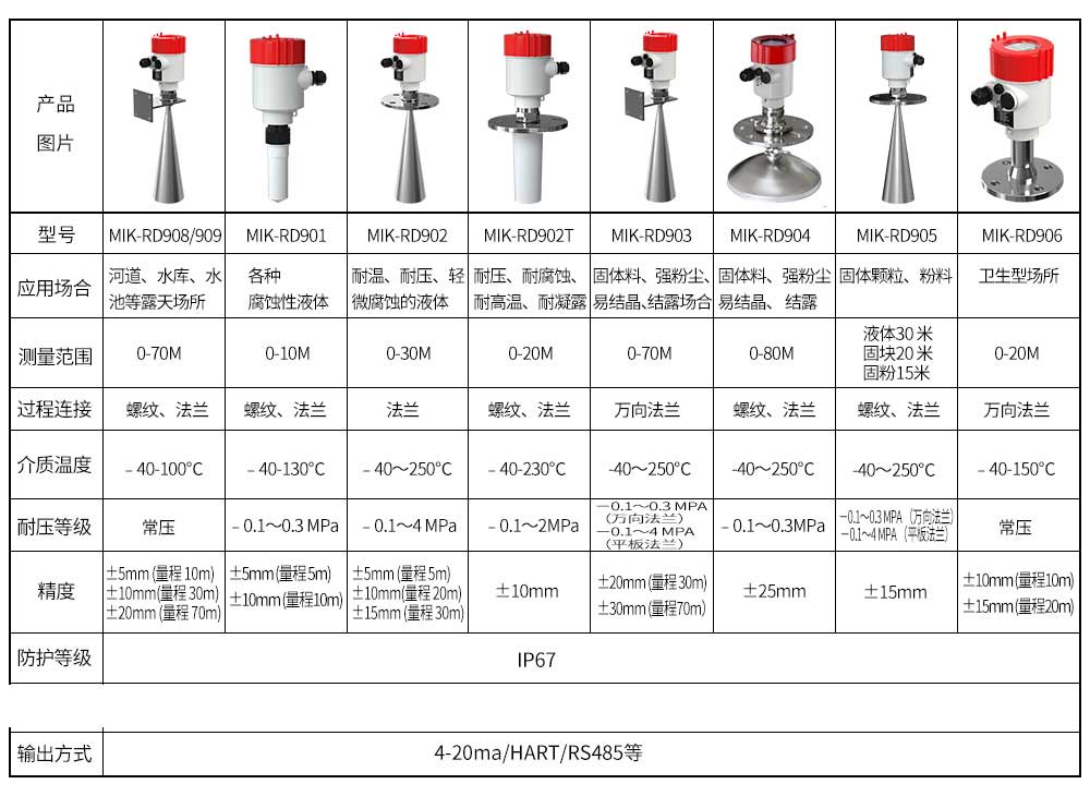 MIK-RD908/909雷达液位计天线发射极窄的微波脉冲